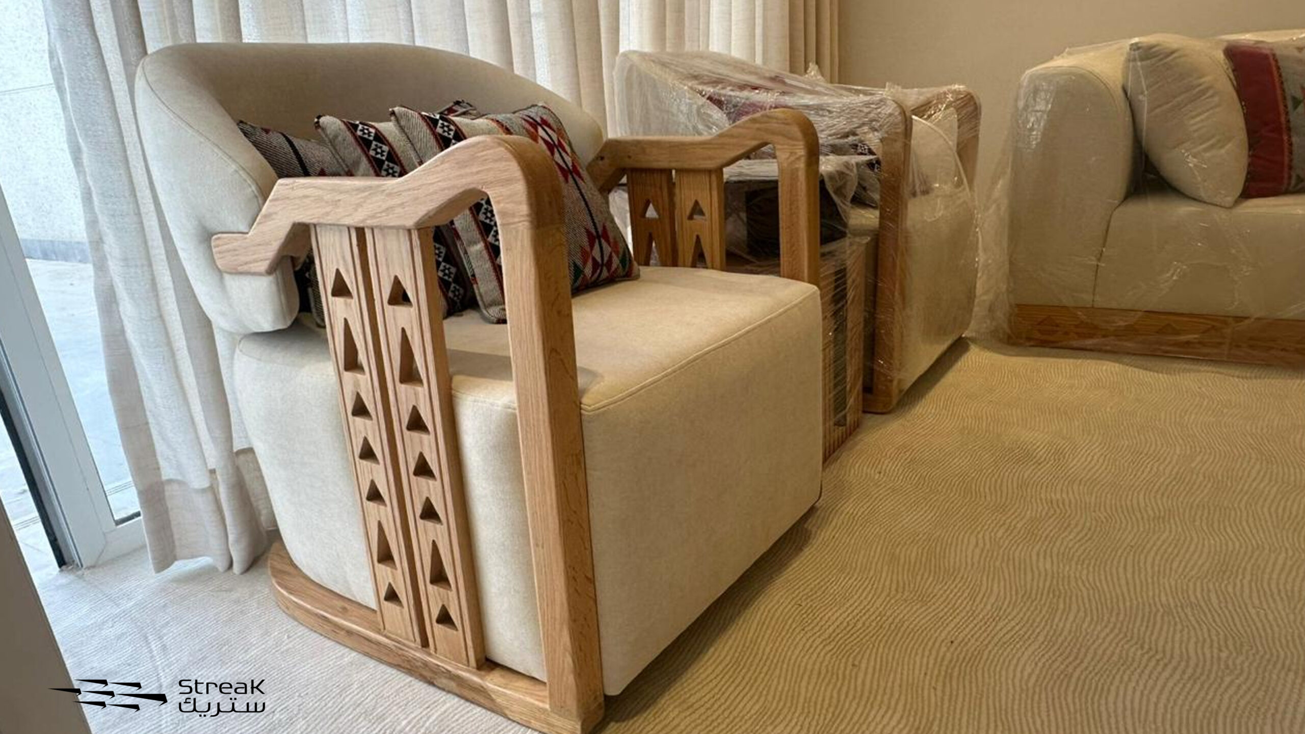 تنفيذ كافة العناصر والقطع داخل مصنعنا بأحدث التقنيات لضمان جودة الخشب والأكريليك والتشطيب.